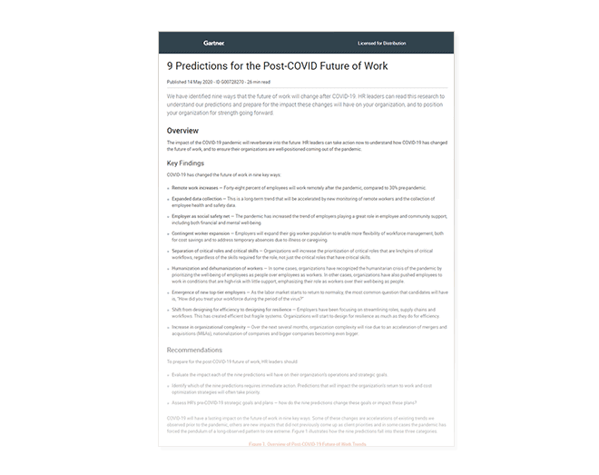 Gartner, 9 Predictions for the Post-COVID Future of Work, Human Resources Research Team, 14 May 2020