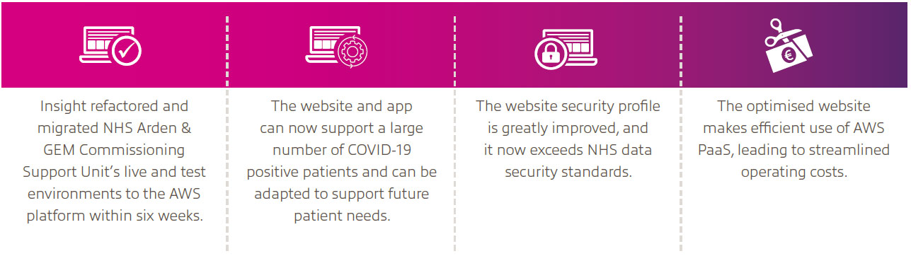 Insight quickly moved the COVID-19 support website and app to the AWS managed platform, removing the ongoing security risk.